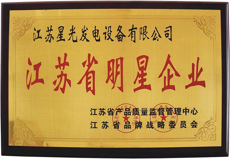 江蘇省明星企業證書