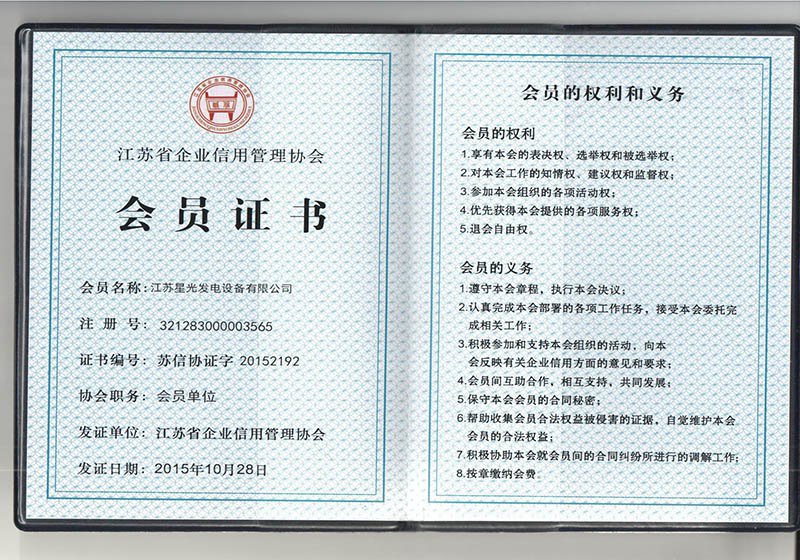 江蘇省企業信用管理協會會員證書
