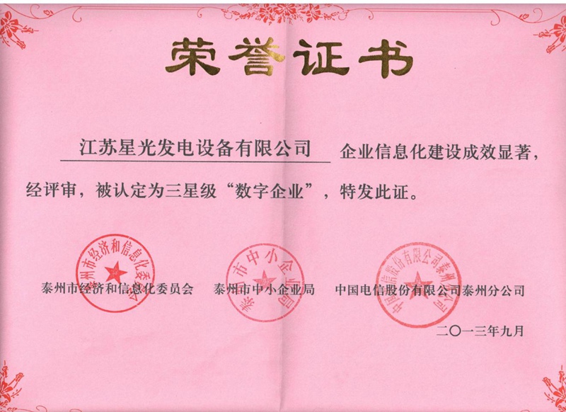 三星級“數字企業”榮譽證書、泰州市誠信單位榮