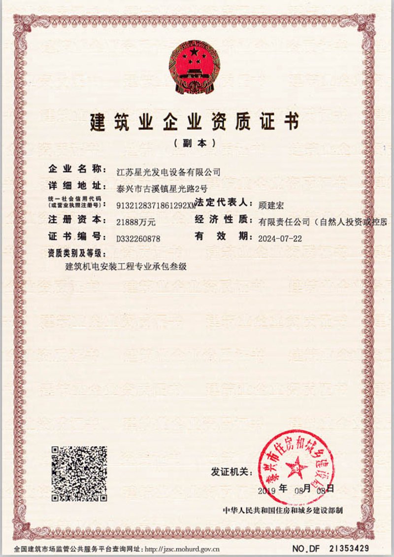 建筑機電安裝工程專業(yè)承包叁級資質(zhì)